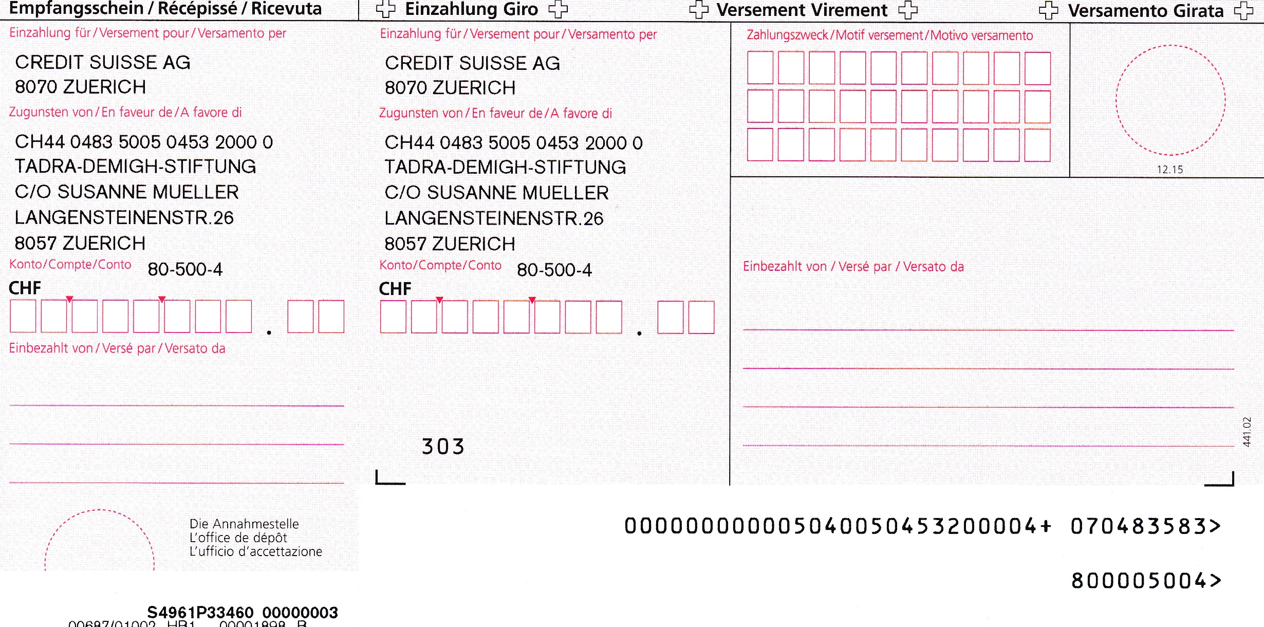 IBAN CH44 0483 5005 0453 2000 0
