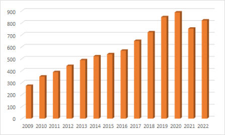 Anzahl betreute Kinder 2009-2022